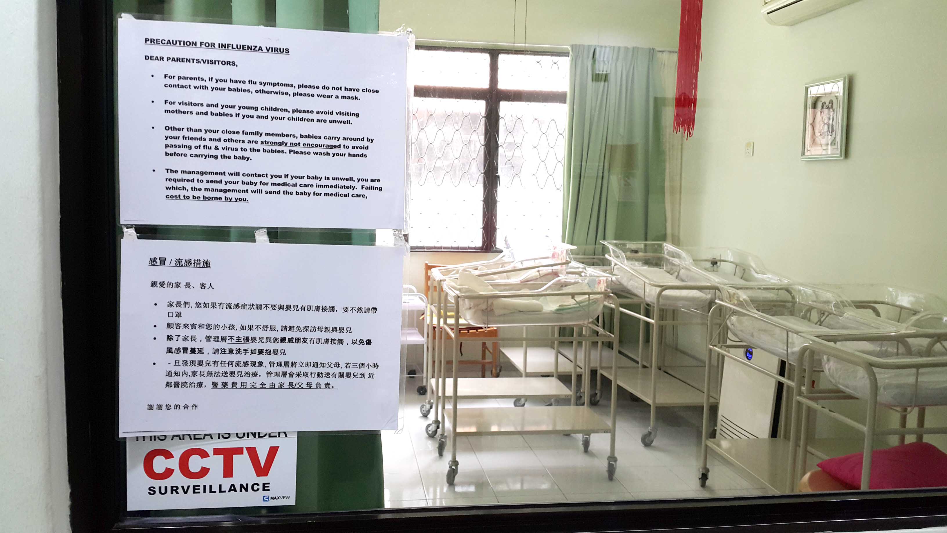唯一要提及的是“寶貝之家 MyJewel” 管理與其他的陪月中心有一點不一樣,在流感及傳染病感染設下了防範措施,為了不讓我們的寶寶或其他寶寶有外來的感染,或寶寶之間的交叉感染,除了寶寶的父母以外,其他的親戚朋友一律不能有肌膚的觸碰或近距離接觸寶寶。如果父母有流感的症狀就必須帶上口罩,不然也暫時不鼓勵接觸寶寶。管理層一旦發覺有寶寶感染流感,他們即刻將全部健康的寶寶隔離等待病愈為止。其他的保安措施也跟其他的中心一樣有安裝閉路監視器;育嬰室不允許外人進入,包括坐月的媽媽們;過了晚上10點至早上7點的公寓圍籬大門和進入公寓走廊的玻璃門也將會上鎖。