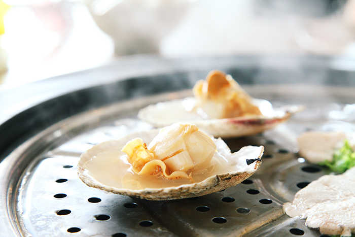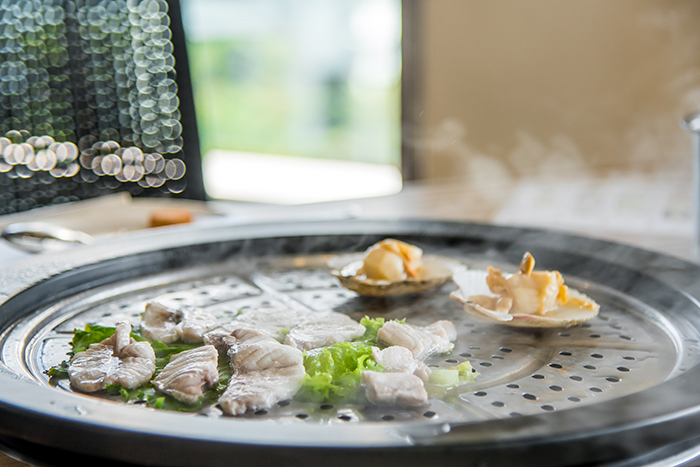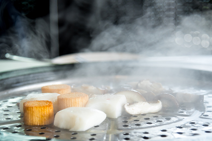 在檳城的“蒸鮮閣”就可以找到這新玩意兒。在店內一個大招牌上面還標榜著“留住鮮味,吃得健康”,這句話就可以完全給詮釋了蒸菜的意義了。裡頭還寫著“釋放蒸汽時,更可以讓食物水嫩Q彈,吃起來飽滿多汁,就像以蒸汽來蒸皮膚會很水嫩一樣的道理”! 換一個更有趣的角度來看不就是變成了讓食物做桑拿嗎?可以去角質讓表層變得更柔嫩,但是做桑拿的時間也不可以太長,不然就會弄巧反作,表皮層內的水分會被蒸發,肉質就會變得乾燥。因此,在吃蒸汽火鍋的同時都會參考店內所提供的一個蒸菜時限指南,依據不同種類的食材設置不一樣長短的蒸汽時間以確保提供最佳品質的蒸菜效果,平均一般上都會控制在3至5 分鐘左右。
