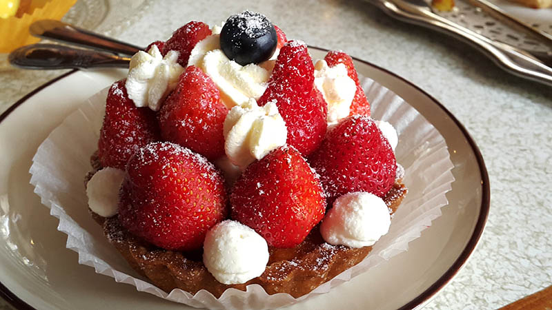 慢慢推開咖啡店的玻璃門,眼角偷偷掃瞄店內的情況,上班天店內竟然還滿客,服務生上前尷尬的邀請我們到店外等候,回頭往窗外看,原來已經有另外一群人也正在凶視着我們。這家超人氣的喫茶店店主還蠻有性格,一律不接受預訂留位,不接受在店內站着候位,座位也不增加,也不擔心客人會流失,像這樣開店做生意的年輕人確實很少有。喫茶店的法式甜點在吃過之後真的感覺讓舌尖嘗到幸福的滋味,值得推薦大家一致讚好的檸檬塔,連同檸檬皮與檸檬汁一起攪拌,製成酸酸的檸檬餡,再配上一顆顆微甜奶油塔還有脆口的餅皮,咀嚼在口裡只可以“百感交集”來形容那好吃的味道。其他人氣甜點包括了鎮店之寶的“新樂園”,草莓蛋糕,還有法式焦糖布蕾。