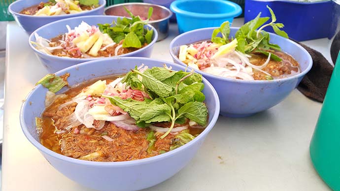 在跟老闆娘聊天的同時,他的員工也弄好了一碗熱騰騰的叻沙端放在桌上,迫不及待吃了一口亞參叻沙湯,就是這當年的味道回來了,這種檳城傳統的酸辣亞參味,酸酸甜甜的,魚肉要煮得夠細綿,湯頭也夠濃郁。同時也點了炒粿條,不到10分鐘時間檳城大蝦炒粿條香噴噴遞上桌。如果喜歡檳城原味也曾經嘗過檳榔律馳名亞參叻沙而對那味道念念不忘的你,下一趟來檳城時請記得別走錯檔口了哦。