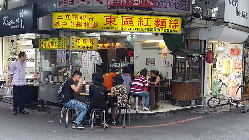 台北東區也被稱有時尚街的美譽,令郎滿目的時尚服飾店舖沿著忠孝東路四段的巷弄間林立招攬着路過的時尚達人。門面設計更是別緻,大小櫥窗內展示着台灣獨立設計師的品牌和一些國外的潮流服飾,美麗衣裳近在眼簾的無處不在,經過這麼漂亮的街道時有種像是行走在國際舞台上的時裝秀,雙腳自然交叉走起了貓步。就在這時尚感強烈的小道上遊走時赫然發現一檔躲在街角處默默經營幾十年的東區紅麵線,極為不怎麼起眼的檔口卻得到當地人和附近上班粉領族的光顧,一碗接一碗的大腸麵線也成為了人氣必吃的小食之一。