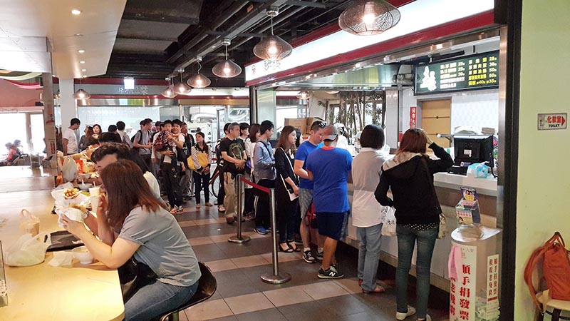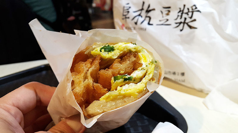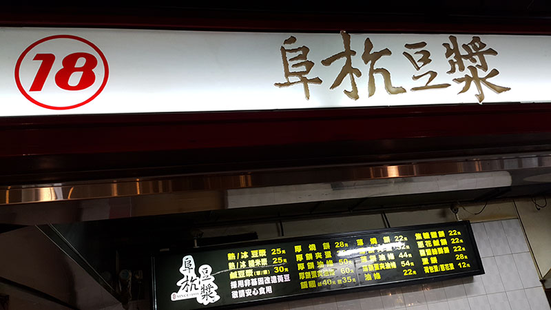 捷運善導寺5號出口的華山市場內暗藏了台灣古早中式早餐,不知道的路人一旦經過捷運站都會很好奇為什麼人龍每天從華山市場內排隊一直到樓下街邊去,就只是要買一份早餐。這裡就是在台灣開業至今已有半世紀的阜杭豆漿,售賣台灣中式早餐如豆漿, 米漿,咸豆漿,厚燒餅,燒餅夾蛋,燒餅蛋夾油條,蘿蔔絲餅等。阜杭豆漿沒有自己的店舖而僅此一家就在華山市場二樓的食肆內開檔,擁有一個落地玻璃與外隔絶的開放式廚房,可以清楚看見那古早烘烤的灶甕仔,燒餅就一片片的粘在甕內直到外皮稍微烤焦,取出後再依客人點餐夾上蛋餅或油條塊等。在還沒看到豆漿燒餅就先看到人龍,這句話一點都沒錯,食客們為了可以品嚐到古早味的早餐不惜一切的排隊等候,早晨5點半開始營業,大概7點後人龍就已經去到了樓下街邊的捷運站出口處,約上午11點左右就售馨。值得一讚的就是這裡的甜豆漿和咸豆漿,黃豆味濃郁,香味更是撲鼻,尤其是熱豆漿的濃稠度往往促使在還來不及品嚐的同時就在熱碗內結成一片又一片的豆皮。能夠與當地民眾一同排隊一起享用一份平民早餐,能夠將一碗熱豆漿給捧在手裡,再早起身去排隊都覺得是一件幸福的事。