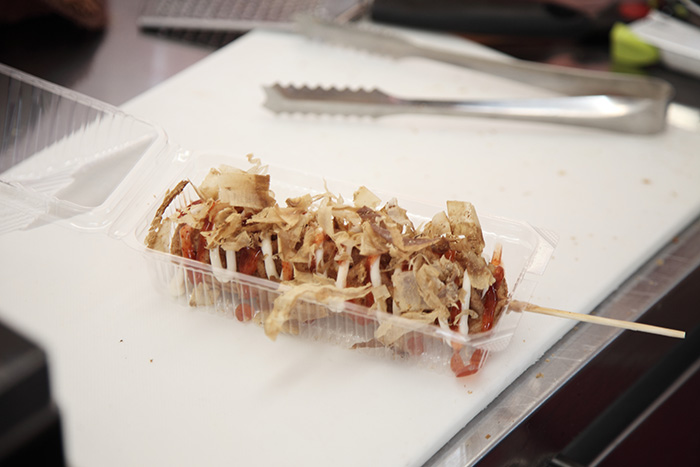 俊健和振雄自創的餐車名為Heureux Food Truck,黃色的車身外形相當亮眼,主要是推廣自創的DIY創意鬆餅。上網谷歌了Heureux這個單詞是法文“快樂”的意思。他們也很坦率的告訴我說他們的夢想就是可以到處去流動做生意,接觸更多人也讓更多人可以嘗得到他們的創意料理,分享他們的快樂。所謂的DIY鬆餅就是可以讓顧客自己決定鬆餅口味,從餡料,餅皮甚至外層的醬料都可以自行搭配。選擇自己喜歡的口味過程也相當簡單,只要跟著3個步驟下單,其餘的他們都為你搞定。第一z選擇鬆餅的口味,如草莓,綠茶或原味,而鬆餅裡的主角可以選擇香腸,香蕉,蟹柳,芝士或果醬等,而外層醬料就有比較特別的瓦薩比美乃滋醬,蜜糖,還有鮮奶霜等。