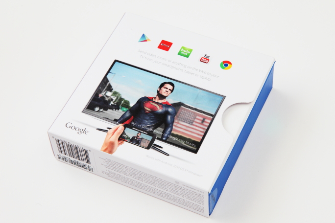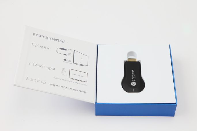 Chromecast 在開箱時發現它擁有的配件比起想像中的簡單,一個約三寸小的電視棒,一個USB轉接線,還有一些接駁線而已。設置程序相當簡易,只要電視機背後有HDMI和USB孔那就可以了。將Chromecast插入HDMI再連接到USB電源,如果電視機沒有USB孔也可以接駁到附近的插座電源。隨後打開電視并將視頻轉換至該HDMI頻道來源,電視螢幕將自動出現設置畫面,跟隨顯示的步驟就可以完成簡單的設置。接下來只需在手機或平板電腦安裝該應用程式Chromecast App,在鏈接到該Chromecast後就可以遙控電視及上網互動了。