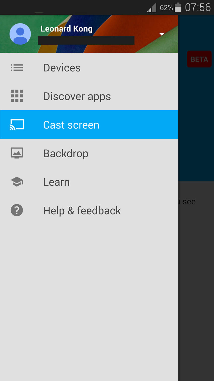 Android平台的Chromecast可以支援Cast Screen,相反蘋果的iOS就缺少了這個選項。