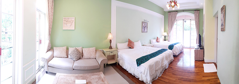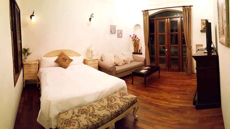去海邊度假腦袋裏一定會是選擇住在海邊熱鬧的小木屋,但畢竟想讓自己渡過一個悠閒的假期,最後我選擇了離開海邊步行只有5分鐘的石牛溪農場 (Kenting Stony Brook Nature Farm)。莊園前身是一個高爾夫球場,後來改建成為一個具有歐式風格的度假村,無論是艷陽下香草石瓦的“托斯卡尼” 套房,還是酒意香醇的“漫步Chateau”浪漫客房, 又或者是“田園小木屋” 都供客人喜好選擇。選擇這裡的原因首當其衝當然是環境清幽,仿如置身在歐洲童話般的牧田家園,早上公雞準時上班,攜帶著母雞在屋外落地玻璃窗徘徊像是窺探房內的客人是否已經睡醒。在屋外享用早餐之際,公雞夫婦依然虎視眈眈的盯着小木桌上的麵包繼續在桌腳下步行。與其說這是一個休閒農場,不如說是住在童話莊園裡卻醒着做夢的享受體驗。這裡也曾經與多部偶像劇合作取景拍攝,自2012年開始的 《沒完沒了的夏天》 李心潔和周俊偉主演,《信樂團的故事》,《天堂的孩子》,還有近期的《遇見幸福300天》 。