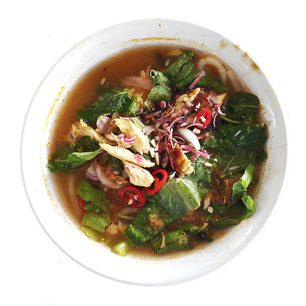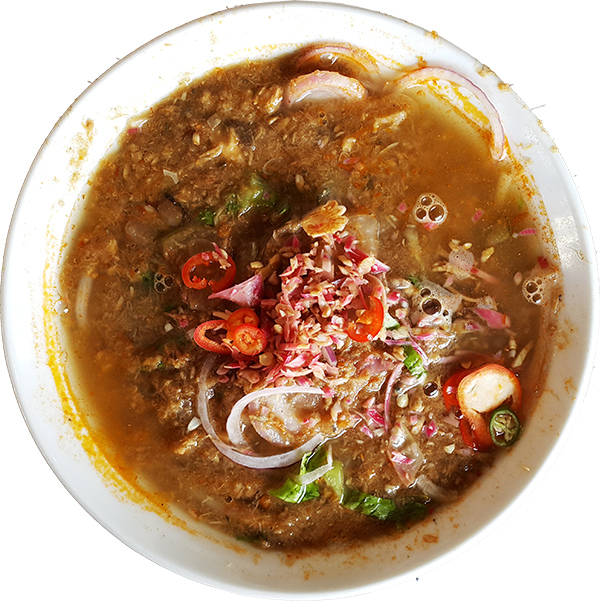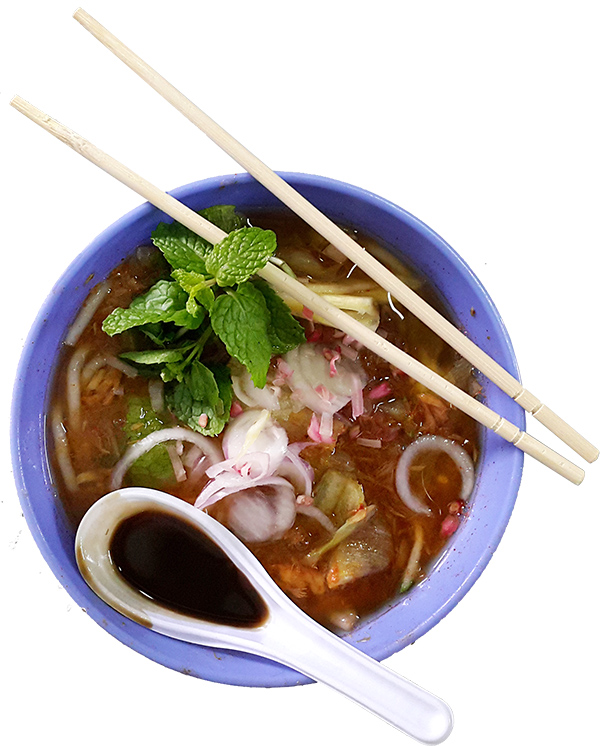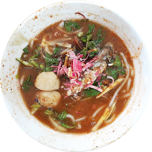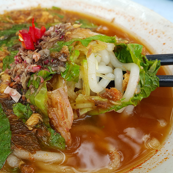著名浮羅舊巴剎的“金叻沙”日前已搬遷到阿逸不爹新市鎮的金成咖啡店,賣的亞參叻沙和暹叻沙品質依舊沒變。叻沙配料和碎魚肉滿滿的覆蓋了碗的面積,筷子夾起方知粗Q瀨粉暗藏在濃郁的湯裡,黃梨和薄荷葉也散發出香味。