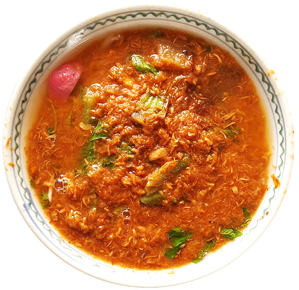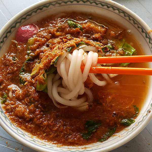 深藏在高淵大街小食檔的亞參叻沙,外地人可能沒太大的去注意,但卻迎來當地人的掌聲。這裡的叻沙特別之處就在於亞參叻沙碗里加上香脆的煎餅,脆餅在叻沙湯內慢慢的軟化,那焦脆的味道也慢慢的融入湯汁裡。
